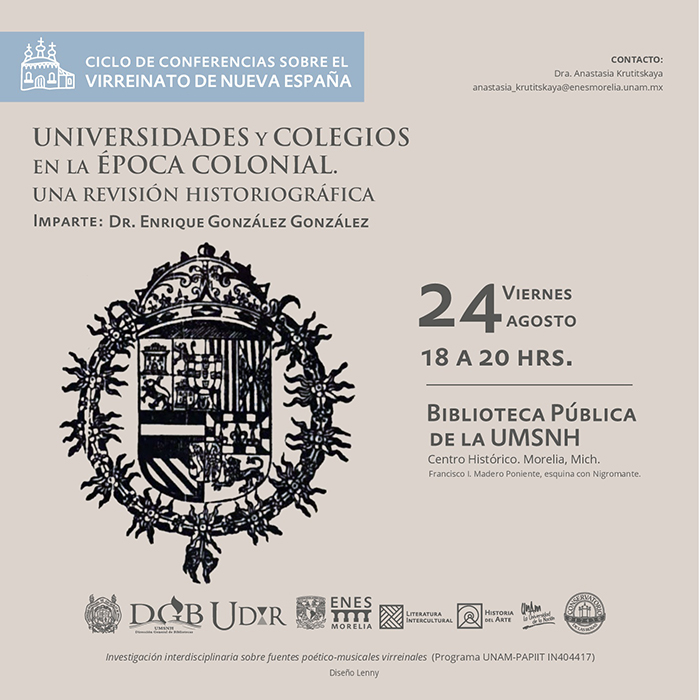 La conferencia aborda el tema de las universidades y los colegios en la época colonial, sin dejar de mencionar a los colegios del Gran Michoacán, sus relaciones con la Real Universidad, y de qué modo éstas eran análogos o diferentes con las del resto de las Indias.
